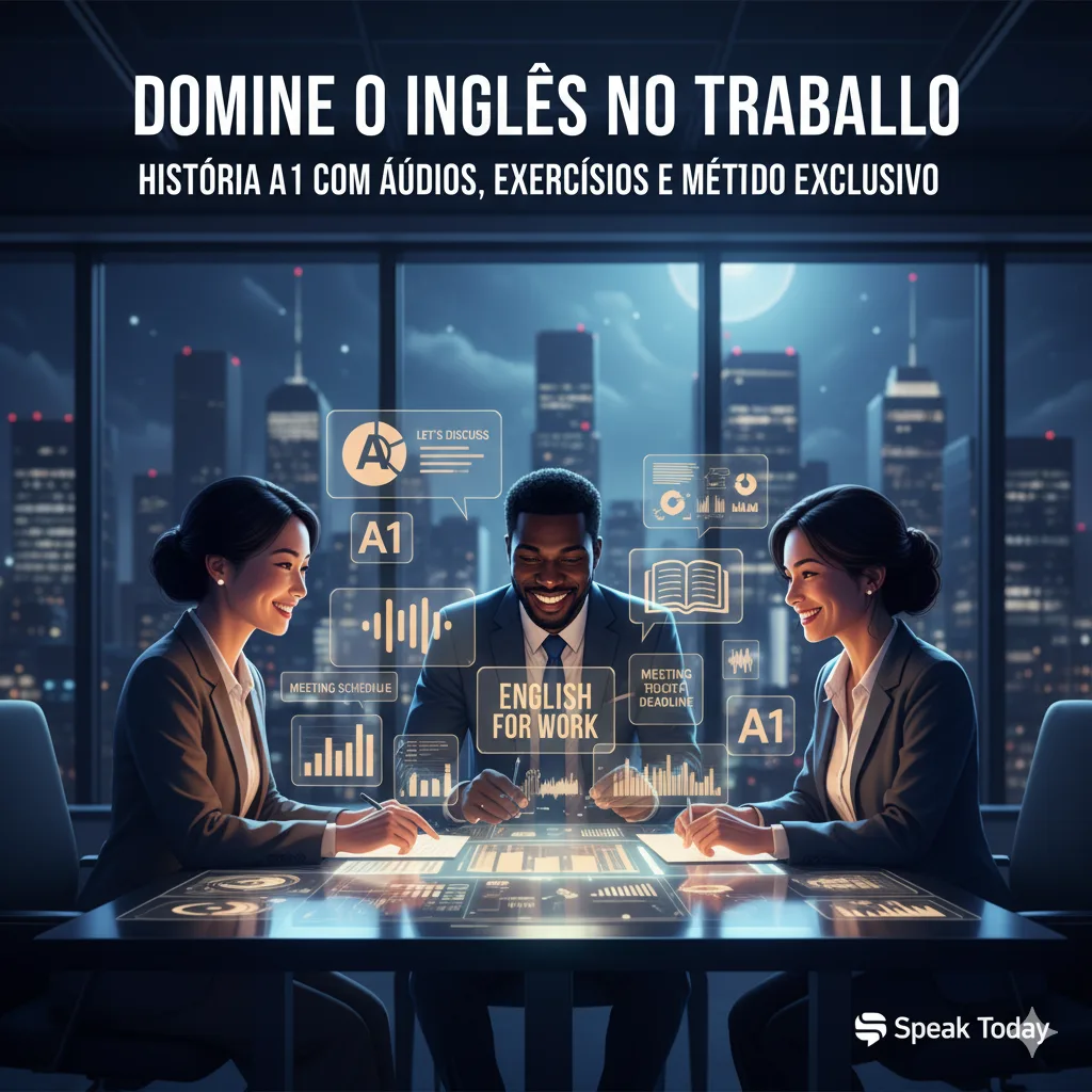 Historias em inglês “Domine o Inglês no Trabalho: História A1 com Áudios, Exercícios e Método Exclusivo!
